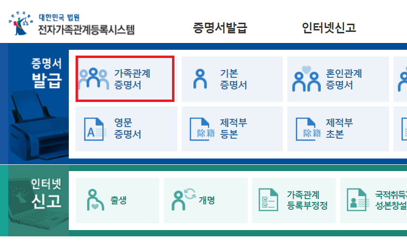 1. 인터넷(전자가족관계등록시스템)에서 발급 : 365일 24시간 무료입니다.