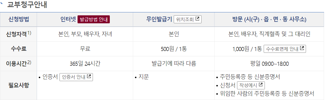 2. 무인발급기 : 보통 행정복지센터에 비치되어 있습니다. 1통 500원