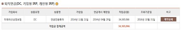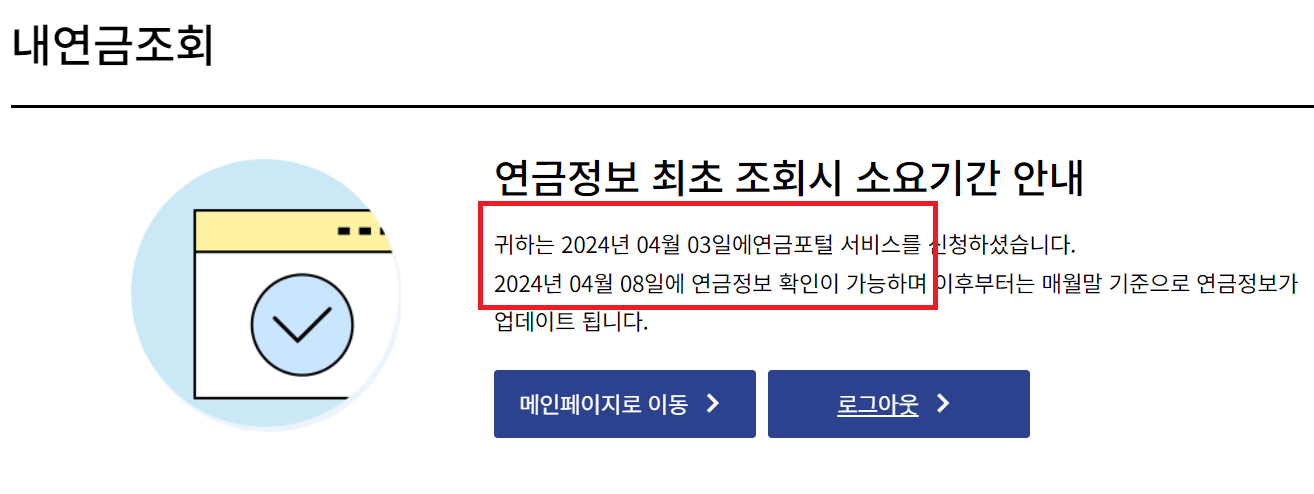 3. 연금 조회를 누르면 다음과 같은 화면이 나옵니다.