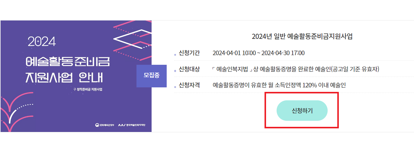 현재 신청을 받고 있는 사업은 일반 예술활동준비금이니 착오 없으시기 바랍니다.